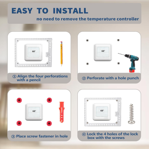 - 【Maintaining Temperature Precision】Featuring a four-sided ventilation design, this lock box for thermostat on wall prevents interference with temperature detection, ensuring the accurate performance of your thermostat without compromise