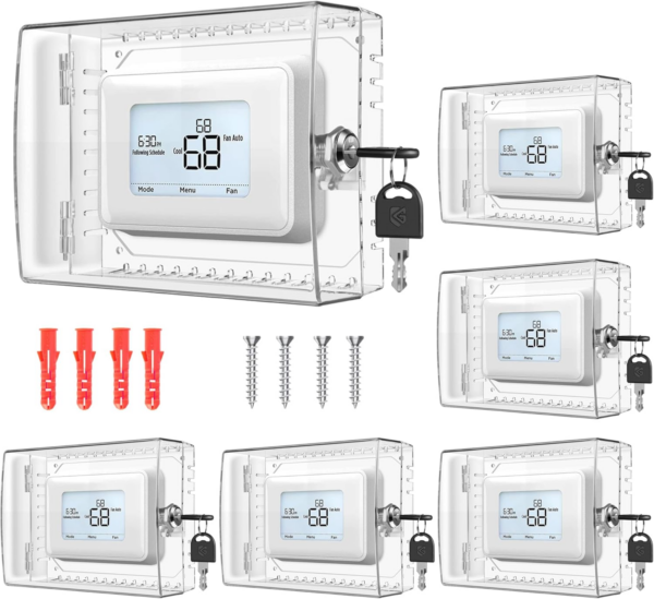 Be the first to review “Large Thermostat Lock Box Cover with Key, Clear Thermostat Cover with Lock Compatible with Honeywell Home Thermostat on Wall, AC Lock Box Cover with Key Fits Thermostats 5″H X 6″ W or Smaller”