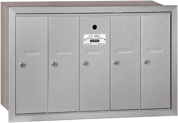 Salsbury Industries 3505ARU Recessed Mounted Vertical Mailbox with 5 Doors and USPS Access, Aluminum